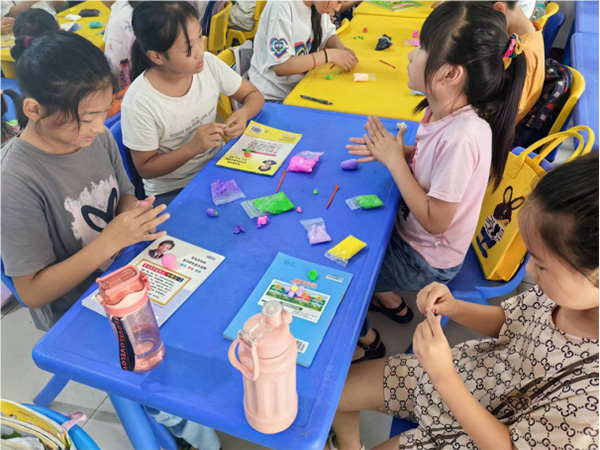 在上完兩節(jié)課后,志愿者李澤鈺給孩子們帶來(lái)了一節(jié)手工課,李老師給孩子們帶來(lái)一節(jié)太空泥制作課。李老師首先講了一些太空泥制作的一些注意事項(xiàng),然后讓孩子們發(fā)揮想象,捏出自己喜歡的東西。在這個(gè)過(guò)程中,李老師在一旁輔導(dǎo),孩子們各自發(fā)揮想象力,用自己的雙手將自己的所想展現(xiàn)出來(lái)。