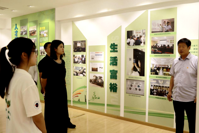 在劉樹(shù)安書(shū)記工作室,大家認(rèn)真聆聽(tīng)了唐陵村“領(lǐng)頭雁”劉樹(shù)安帶領(lǐng)村民脫貧致富、建設(shè)美麗鄉(xiāng)村的奮斗故事。工作室里的一張張圖片、一段段視頻,如同鮮活的歷史畫(huà)卷,生動(dòng)展示了唐陵村從“薄弱村”到“全國(guó)文明村”的驚人歷程,讓師生們深刻感受到基層黨支部的戰(zhàn)斗堡壘作用以及黨員干部身上閃耀的先鋒模范精神。