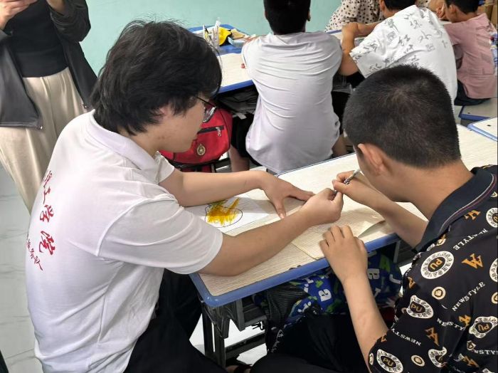 圖為實(shí)踐隊(duì)員教學(xué)生畫(huà)畫(huà)。王李昭 供圖