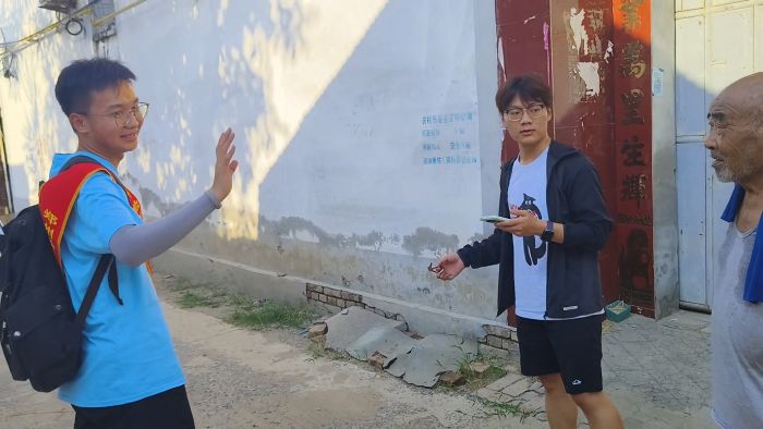 圖為社會(huì)實(shí)踐隊(duì)成員完成慰問任務(wù)后,與家長(zhǎng)鄭重告別,表達(dá)關(guān)切與祝福。冉思磊 供圖