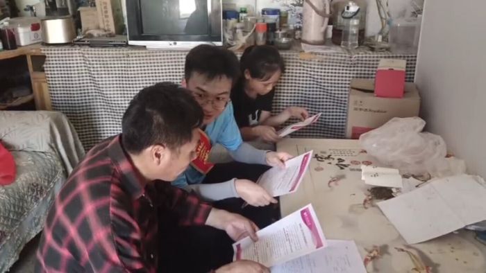 實(shí)踐第一站,是位于新鄉(xiāng)市原陽(yáng)縣路寨鄉(xiāng)的路東村。驕陽(yáng)似火,服務(wù)隊(duì)一行卻絲毫不懈怠,頂著烈日穿過(guò)田埂、步入農(nóng)家小院。他們把米、油等生活物資搬進(jìn)屋內(nèi),又和學(xué)生及其家人坐在桌椅旁嘮起家常。面對(duì)面宣講獎(jiǎng)助學(xué)金申請(qǐng)辦法、學(xué)生貸款政策、資助熱線等內(nèi)容,隊(duì)員耐心細(xì)致,幫助家長(zhǎng)理清思路,消除疑慮。“我家孩子成績(jī)一般,也能申請(qǐng)獎(jiǎng)學(xué)金嗎?”“貸款以后幾年開始還?”面對(duì)家長(zhǎng)的這些樸素提問,服務(wù)隊(duì)都逐條解答并作記錄。
