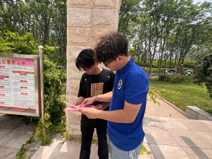本次實踐活動團隊成員早早抵達洛浦公園。成員們身著整齊藍色隊服,攜帶精心準備的宣傳資料,滿懷熱情地開啟宣講之旅。成員們積極向市民發放宣傳頁,耐心講解黃河對于中華民族的重要意義,從黃河孕育的燦爛文明,到如今面臨的生態挑戰,再到國家推動黃河流域生態保護和高質量發展戰略的深遠影響,內容豐富詳實。宣講過程中,小分隊還結合實地情況,向市民宣傳洛河與黃河的緊密聯系,以及保護洛浦公園生態環境對于黃河流域生態保護的重要性,使市民們對黃河相關知識表現出濃厚興趣,提出許多關于黃河生態保護、文化傳承等方面的問題,成員們都一一解答。