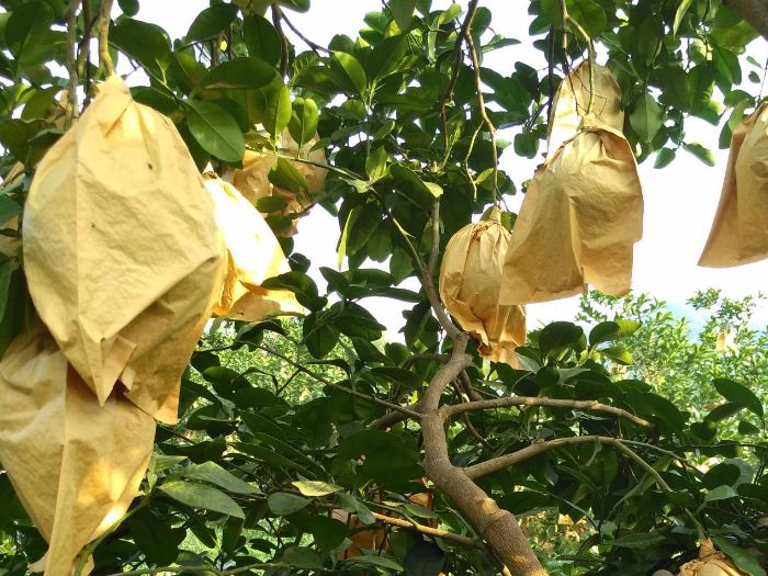 7.24日“農品新生“調研團隊調研首站步入廣西農科院沙田柚智慧種植示范基地,團隊成員親身體驗農業科技的魅力,連片的沙田柚樹套著黃色的袋子讓隊員們充滿好奇,隨著種植基地負責人的腳步,調研隊來到了沙田柚樹下,隊長黃詩怡向負責人問道:“為何沙田柚都用黃色的袋子包裹住?這樣做有什么作用嗎?”種植基地負責人耐心詳細地回答套上黃色的袋子主要有四個用處,第一可以減少農藥污染,能有效阻隔農藥與果實直接接觸,降低果實表面的農藥殘留。第二改善外觀品質可以避免外界物質對果實的表面機械損傷,減少病蟲害叮咬。第三提高果品質量,可以減少果實受外界不良氣候的影響,降低裂果率,還能適當調節袋內溫度和濕度,利于果實糖分積累提高品質。第四可以降低成本,比如減少因病蟲害,機械損壞等導致的落果,提高果實的完好率和產量,從而在一定程度上降低了生產過程中的損失,間接降低了生產成本。