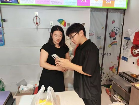 圖為實踐隊成員陳思宇與水果店老板進行交涉,咨詢直播事宜。陳思宇攝