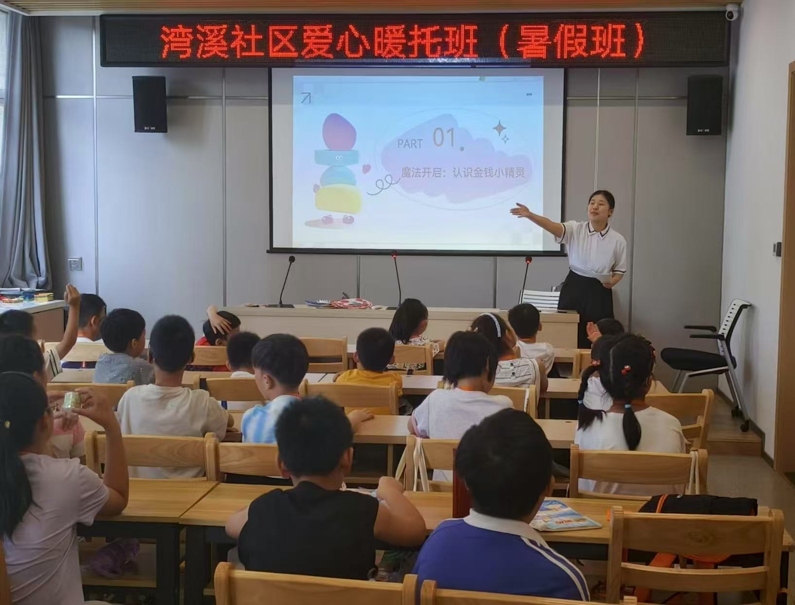 講金理釋義,潤(rùn)童心無(wú)聲 7月14日起,隊(duì)員們陸續(xù)走進(jìn)多個(gè)地點(diǎn)的少年活動(dòng)中心和兒童成長(zhǎng)空間,開展財(cái)商課堂。