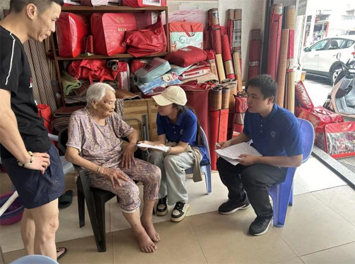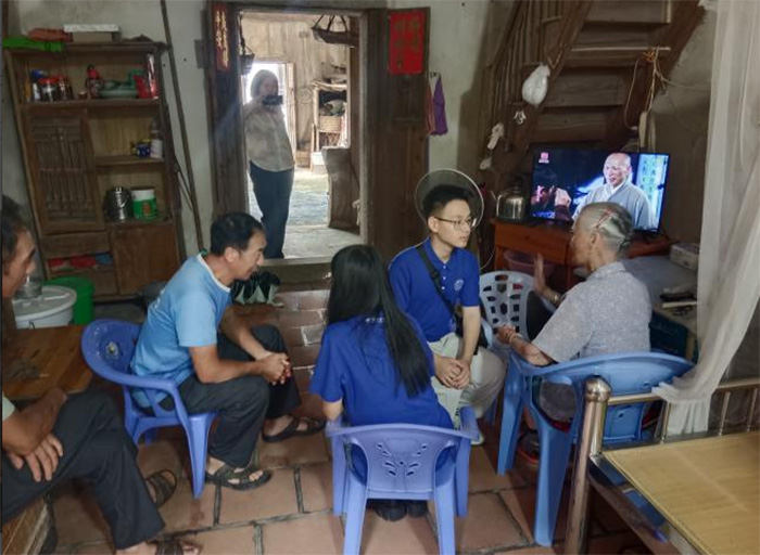 實踐團成員們深入調研現場,在當地民政部門、村委會干部與社會工作者的引導下,走進百歲老人家中,走訪過程中,成員們始終以“用心傾聽、用情服務”的態度開展工作。他們不僅關注老人的物質生活條件,更注重挖掘其精神需求與情感訴求。實踐隊成員細心詢問老人的家庭照料、醫療保障、精神狀態等情況,在傾聽老人們講述歲月故事的過程中,認真記錄每一個細節,用真誠的陪伴傳遞著青年一代的問候與尊重,使調研活動既成為了解民生的窗口,也成為青年學子反思社會責任的契機。