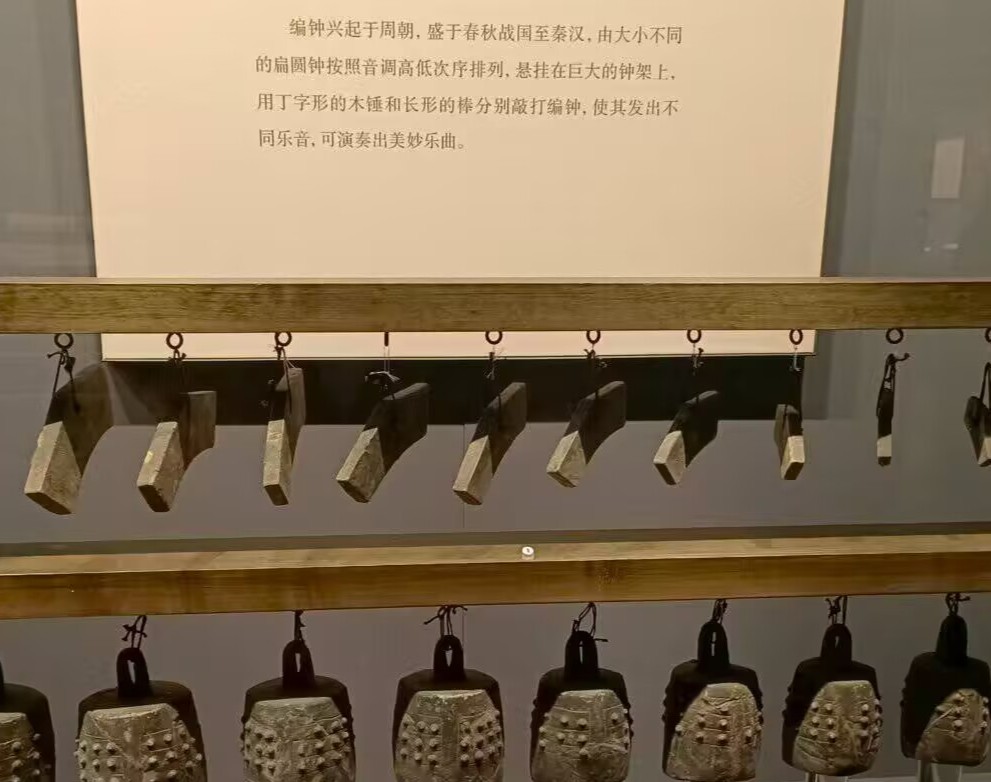 在青銅器展廳,一組保存完好的編鐘令隊員們驚嘆不已。"用丁字形的木錘和長形的棒分別敲打編鐘,可以讓其發出不同的樂音,奏出美妙樂曲,展現了驚人的鑄造工藝",指導老師現場講解道。