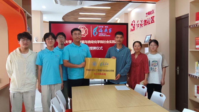 最后,河海大學(xué)人工智能與自動化學(xué)院與海英草志愿者中心正式簽署合作協(xié)議,并舉行授牌儀式。紅綢揭下的瞬間,全場響起持久掌聲。實踐團成員與志愿者中心工作人員合影留念,鏡頭定格了笑容與期待。