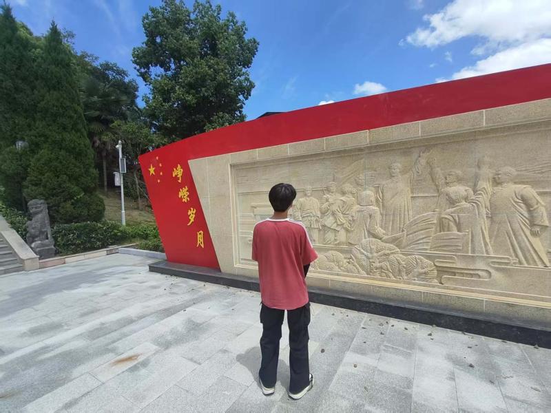 此圖為烈士陵園浮雕,賈先爽供圖。 園內(nèi)的革命先輩雕像,定格著先驅(qū)們的偉岸身姿。實(shí)踐團(tuán)成員圍站雕像旁,聽著先輩們?yōu)楦锩聵I(yè)披荊斬棘、為人民幸福鞠躬盡瘁的故事,先輩們的信仰之光,照亮了成員們理解 “初心使命” 的青春之路,更堅(jiān)定了大家傳承紅色基因、續(xù)寫時(shí)代榮光的決心。