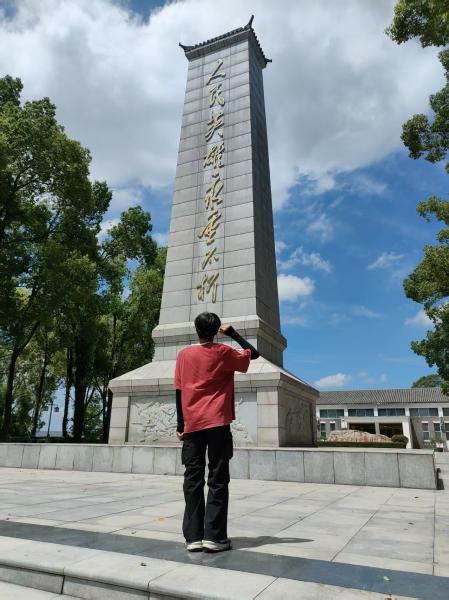 此圖為烈士陵園紀(jì)念碑,賈先爽供圖。 “崢嶸歲月” 浮雕墻前,工農(nóng)運(yùn)動的激昂場景、革命斗爭的熱血畫面鮮活呈現(xiàn)。成員們駐足細(xì)觀,從浮雕的紋理中觸摸歷史溫度, 在 “工農(nóng)聯(lián)盟、奮勇向前” 的場景里,讀懂革命先輩團(tuán)結(jié)奮斗、不畏犧牲的精神密碼,感悟紅色政權(quán)來之不易、新中國來之不易。