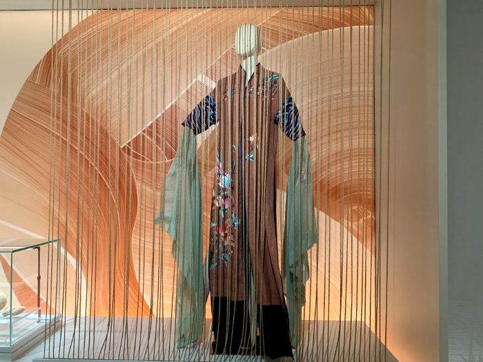 (圖為實踐成員及指導老師在講解員的帶領下參觀夏布國際時裝周作品 張秫攝)