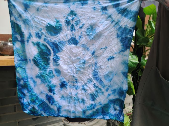 活動現(xiàn)場,團隊成員在專業(yè)指導(dǎo)下,沉浸式體驗夏布手工扎染。從布料折疊、捆扎,到浸染、晾曬,每一步都傾注著對非遺技藝的敬畏。經(jīng)過獨特工藝,原本素凈的布料化作藍白相間、圖案別致的藝術(shù)作品,展現(xiàn)出扎染 “暈色豐富、變化自然”的獨特美感。夏布作為榮昌“四珍”之一,承載著當(dāng)?shù)厍昙徔椢幕?/p>