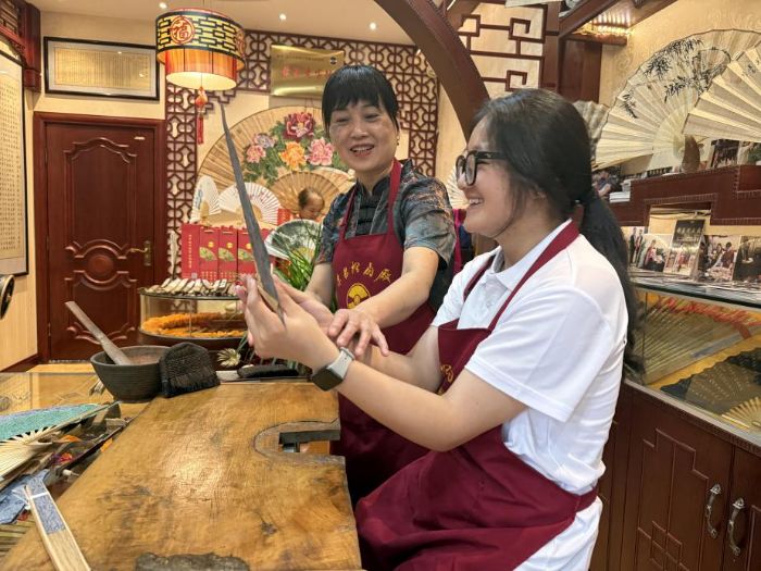 在非遺傳承人的指導(dǎo)下,實(shí)踐隊(duì)員們興致勃勃地嘗試起折紙扇。看似簡(jiǎn)單的步驟,實(shí)際操作起來卻頗有難度,從扇骨的排列到扇面的折疊,都需要細(xì)致與耐心。“原來一把小小的紙扇,要經(jīng)過這么多道工序,每一個(gè)細(xì)節(jié)都不能馬虎。”一位實(shí)踐團(tuán)感慨道。通過親手實(shí)踐,成員們不僅掌握了折紙扇的基本技巧,更深刻體會(huì)到了傳統(tǒng)手工藝的復(fù)雜性與嚴(yán)謹(jǐn)性。
