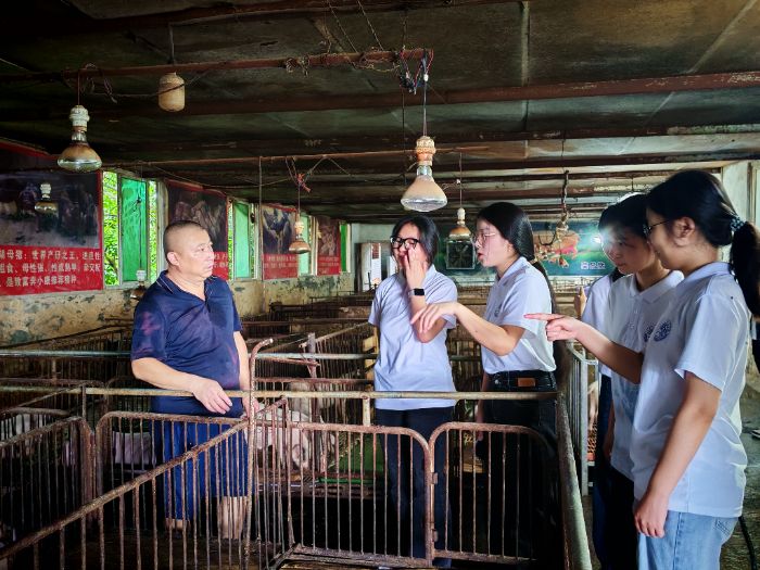 實踐團還深入了解了養殖場的運營細節:養殖規模方面,高峰時期母豬存欄量突破5000頭;銷售渠道上,以線下交易為主,客戶多通過電話預訂后上門選購,周邊地區可提供配送服務,線上銷售因物流制約尚未大規模鋪開;政策支持上,當地對產崽5頭以上的榮昌母豬,每頭給予500元補貼,有效激發了養殖熱情。 此外,養殖場通過合作社模式聯動周邊農戶,帶動大家通過科學養殖增收。負責人還講述了自己自2006年踏入養豬行業的奮斗經歷,分享了多年積累的養殖心得,讓團隊對基層養殖者的堅守與付出有了真切體會。