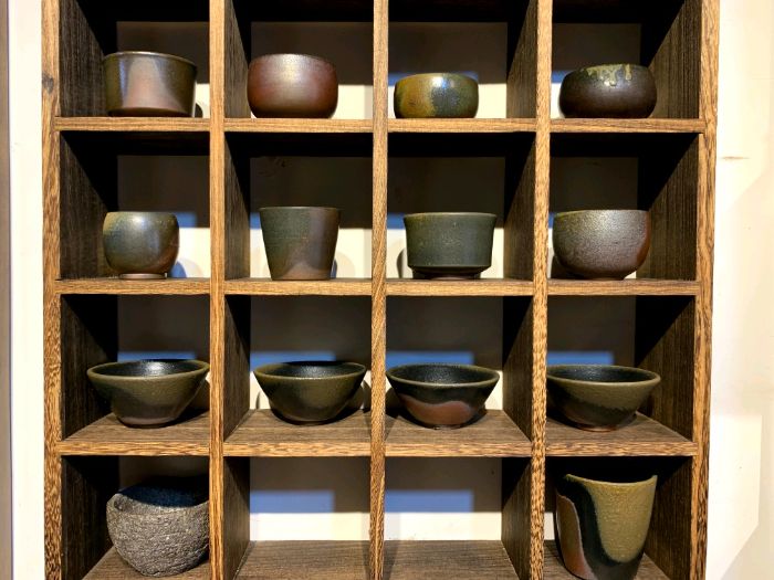 穿過鐫刻歲月痕跡的“陶寶古街”,學生們被一家老店吸引。滿架陶器在幽光中流淌著奇異釉色:朱砂紅的絞泥紋路如潑墨山水,天青釉的茶盞溫潤似玉,粗陶泡菜壇的拙樸肌理間沉淀著時光。