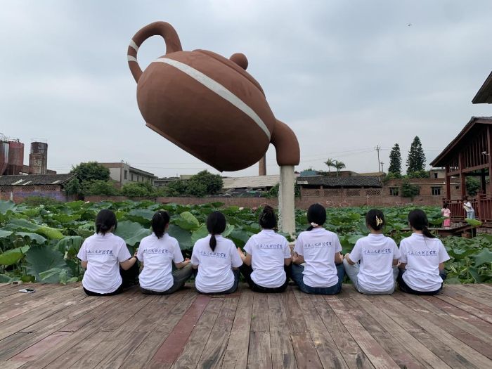 在參觀過程中,實踐團成員們還充分發揮創意,拍攝了一組組別具匠心的照片。他們或與造型奇特的陶罐合影,用鏡頭記錄下與榮昌陶的美好邂逅。這些創意照片不僅展現了成員們的青春活力,更傳遞出他們對非遺文化的喜愛與尊重。