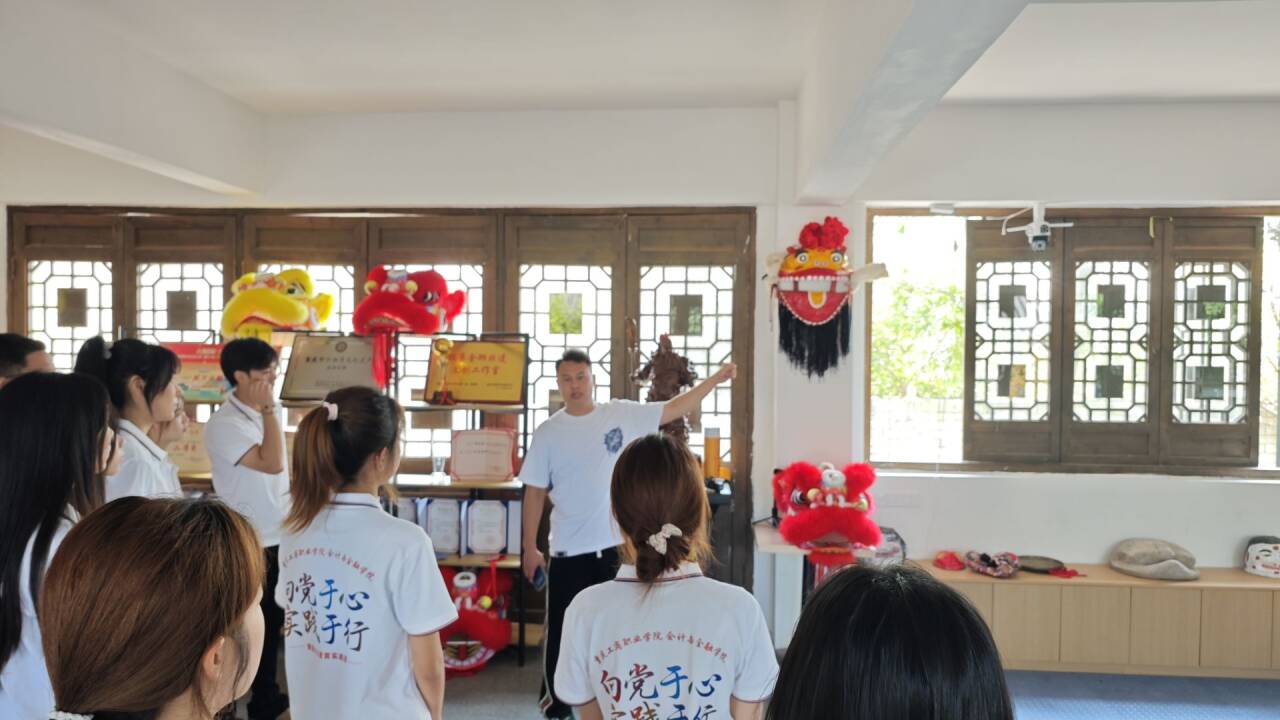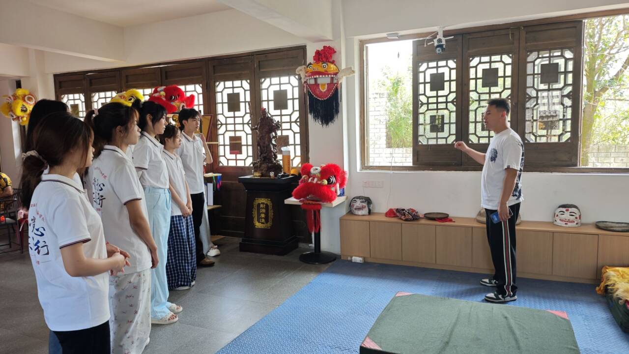 在隨后的學習環節中,傳承人耐心向實踐團成員講解了舞獅的基本動作要領和文化內涵。從獅頭的握持技巧到步伐的協調配合,從眼神的傳神表達到手部的細膩動作,傳承人一一示范、細致指導。成員們熱情高漲,分組進行練習,盡管初期動作略顯生澀,但在反復揣摩與實踐中,逐漸找到了舞獅的韻律感,不少人還能完整完成“抱拳”“擺尾”等基礎動作,切身感受到了非遺文化的獨特魅力。