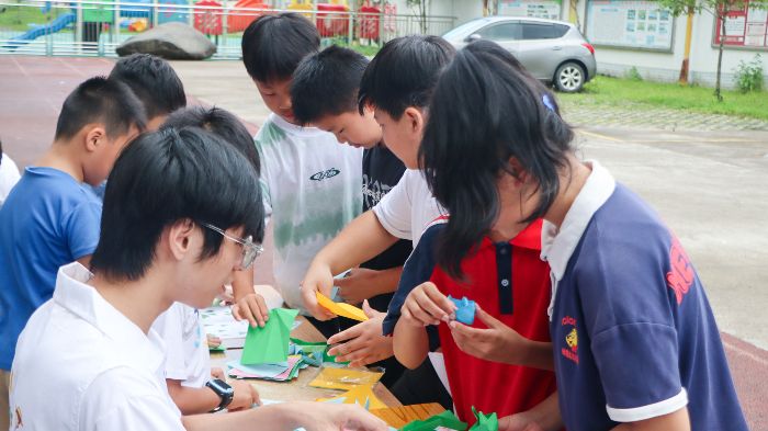 圖為孩子們排隊(duì)折紙。“籽籽同行”突擊隊(duì) 供圖