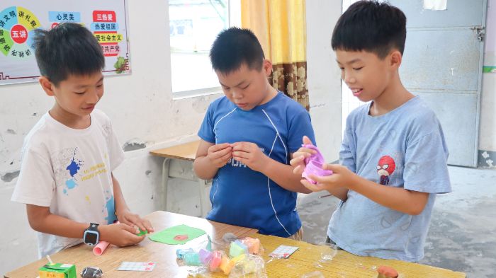 圖為孩子們合作制作粘土。“籽籽同行”突擊隊(duì) 供圖