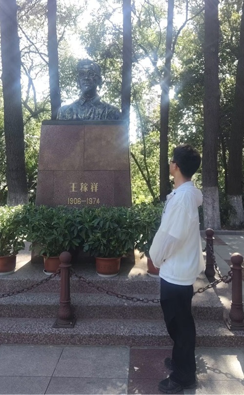 2025年7月23日10點,迎著蓬勃的朝陽,志愿者步入莊嚴肅穆的紀念館,拾階而上,映入眼簾的便是巍然矗立的王稼祥銅像,銅像的目光堅毅,昂首挺胸,似在時刻思索國家的未來和革命的未來。瞻仰著這尊銅像,志愿者便不經聯想到那段崢嶸的革命歲月,于是懷著崇高的敬意向其敬禮又將他的面容刻入心底。