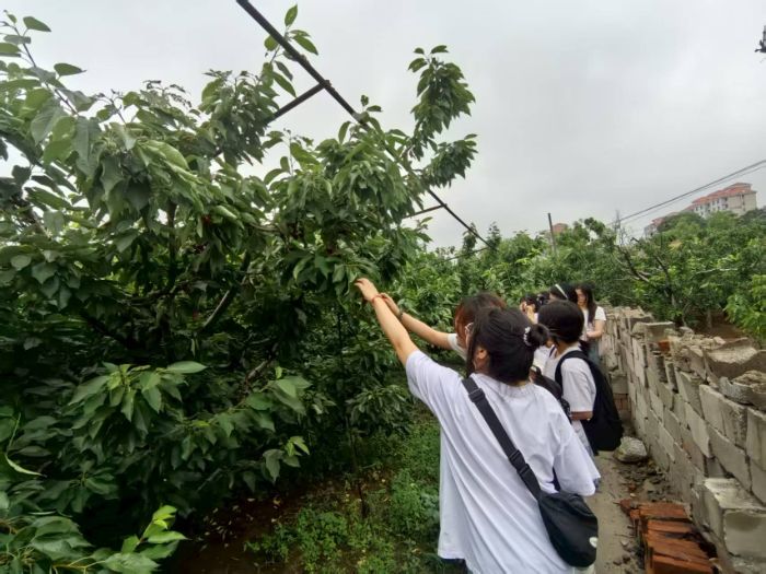 在石河村,'沙王'櫻桃不僅是一個品種,更是一套完整的產業升級案例。通過駐村工作隊的對接,這里完成了從傳統種植到三產融合的關鍵躍遷:一產優化,二產延伸,三產突破,小櫻桃的供給側改革,正是微觀中國最生動的教案"。實踐團走進櫻桃種植園,與種植戶交流,深入了解了種植櫻桃的品種、種植過程以及石河村旅游業的發展對櫻桃采摘產業的推動作用,利用所學知識,與農戶針對種植過程中所需水肥以及最適宜種植品種展開討論,得到了農戶的肯定。