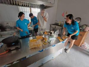 為更快融入當地生活,團隊抵達首日即自行解決伙食,共同完成了一頓充滿鄉土風味的午餐。鍋碗瓢盆的碰撞聲增進了隊員間的默契,裊裊炊煙中洋溢著青春的活力與團隊的溫暖。