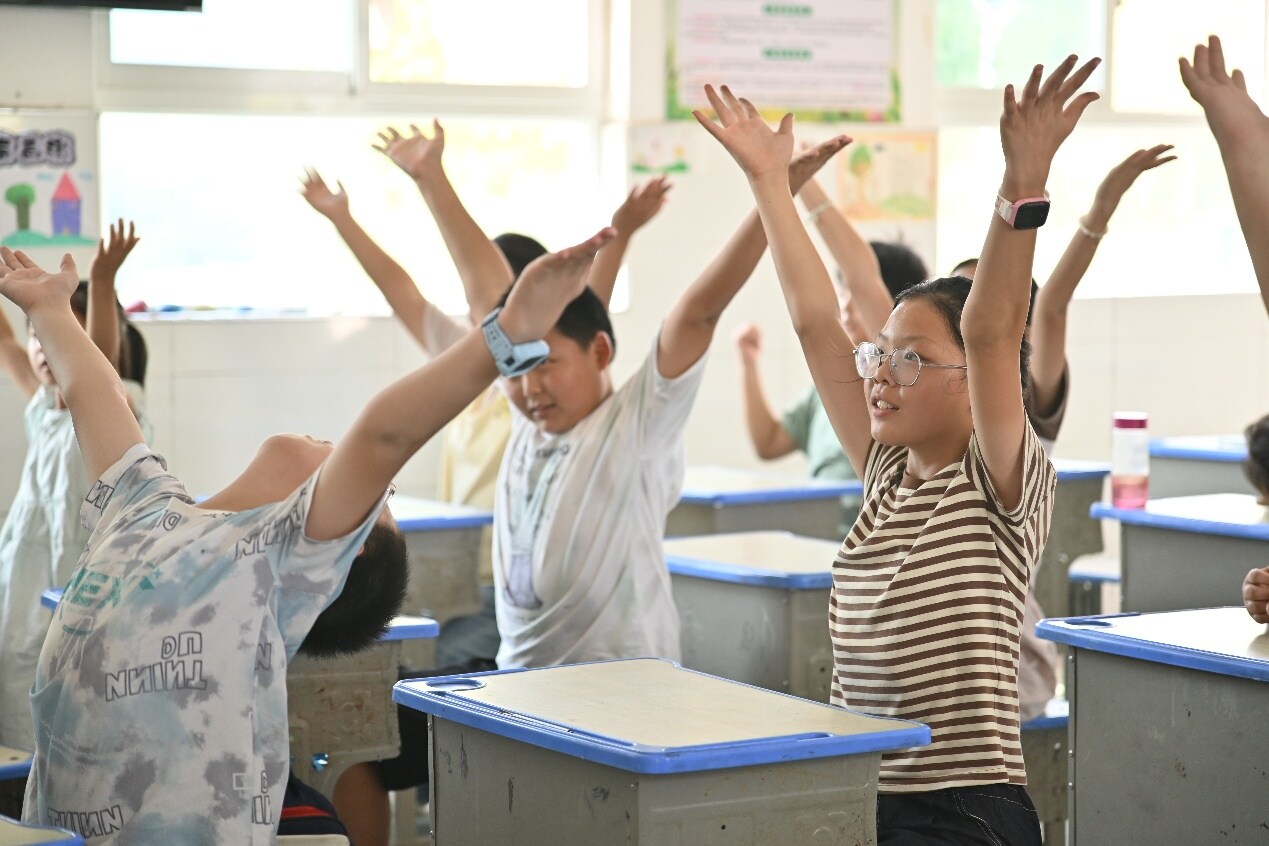 起初,教室里“乒乒乓乓”一片熱鬧的“雜音”,孩子們手忙腳亂,杯子也調皮地“逃跑”。一遍、兩遍、三遍……專注的眼神緊盯著杯子和老師的手勢。雜亂的聲音逐漸匯聚成整齊劃一的節拍,動作流暢起來,杯子仿佛被施了魔法,在桌面上、手掌間跳躍、旋轉、碰撞,發出清脆悅耳的聲響。當整齊的節奏完美卡上音樂的鼓點,整個教室沉浸在韻律的狂歡中。