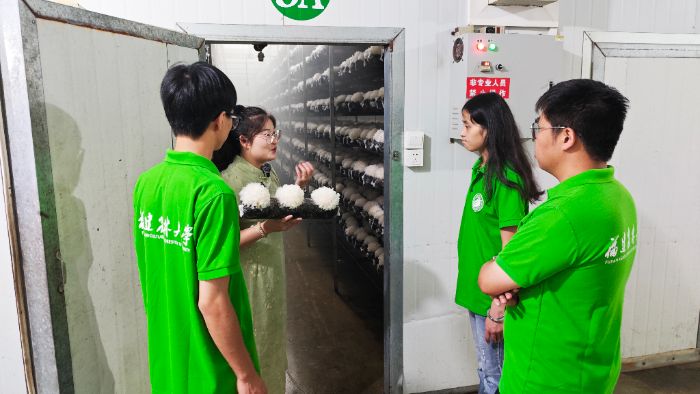 實踐隊首先來到福建寧德晟農農業開發有限公司無公害銀耳生產基地。步入恒溫恒濕的現代化菇房,科技賦能農業的圖景清晰呈現。隊員們