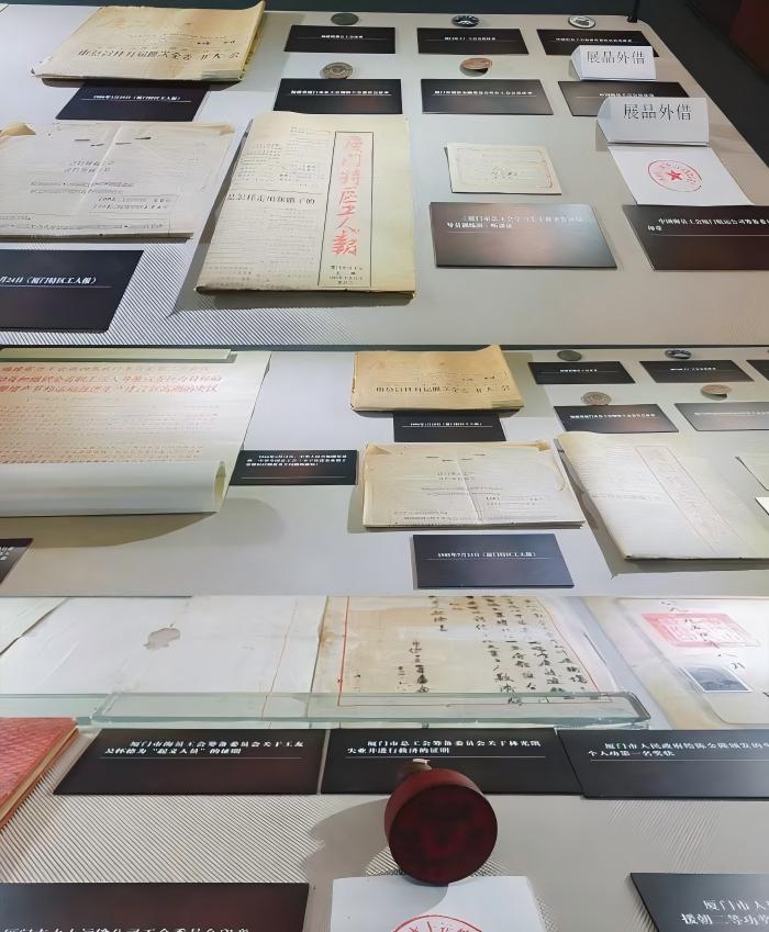 接著,實(shí)踐隊成員參觀了廈門總工會(現(xiàn)址)。由于是新修建的,整體建筑大氣恢弘、環(huán)境良好。在這里大家學(xué)習(xí)了全國總工會的百年發(fā)展歷程,從篇章一“覺醒年代”到篇章二“建設(shè)與改革年代”,再到篇章三“新時代征程”,一件件珍貴的史料、一張張定格歷史的照片、一段段還原現(xiàn)場的影像,把實(shí)踐隊成員帶回了1927年那個燭光搖曳的夜晚——廈門總工會就在大同路土堆巷68號這棟紅磚“小紅樓”里宣告成立。櫥窗里泛黃的《總工會章程》、羅揚(yáng)才和楊世寧烈士用過的油燈與筆墨,以及按原貌復(fù)原的會議室,讓成員們駐足凝視,深切感受到先烈們在血與火的斗爭中用生命寫下的初心與使命。