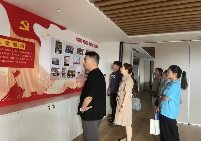 實(shí)踐團(tuán)隊(duì)首站走進(jìn)企業(yè)內(nèi)部,在聆聽(tīng)陳昕對(duì)企業(yè)概況的簡(jiǎn)介后,依次參觀企業(yè)榮譽(yù)墻、員工辦公區(qū)、休息活動(dòng)區(qū)與黨建中心等內(nèi)部區(qū)域,在陳昕的介紹下了解企業(yè)在安全交易、環(huán)保實(shí)踐等方面的舉措,直觀理解企業(yè)社會(huì)責(zé)任落地路徑。榮譽(yù)墻羅列的各類(lèi)獎(jiǎng)項(xiàng),見(jiàn)證了企業(yè)履行責(zé)任獲得的認(rèn)可,其中企業(yè)的駱德龍董事長(zhǎng)曾獲得全國(guó)勞動(dòng)模范榮譽(yù)稱(chēng)號(hào)。員工辦公區(qū)里,工作節(jié)奏忙碌有序,傳遞出企業(yè)日常運(yùn)營(yíng)對(duì)責(zé)任理念的貫徹。休息活動(dòng)區(qū)布置溫馨,體育活動(dòng)等設(shè)施齊全,體現(xiàn)企業(yè)對(duì)員工關(guān)懷這一社會(huì)責(zé)任維度。黨建中心則揭示紅色引領(lǐng)下,企業(yè)通過(guò)評(píng)選先進(jìn)黨員,設(shè)立企業(yè)婦聯(lián)等,將社會(huì)責(zé)任融入發(fā)展基因的深層邏輯,讓實(shí)踐團(tuán)隊(duì)對(duì)企業(yè)責(zé)任生態(tài)有了具象認(rèn)知。