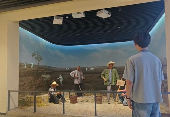 團(tuán)隊(duì)一抵達(dá),小井莊厚重的歷史畫卷便徐徐展開。在莊嚴(yán)肅穆的中國農(nóng)村包產(chǎn)到戶紀(jì)念館內(nèi),隊(duì)員們屏息凝神,通過泛黃的契約文書、珍貴的影像資料,觸摸那段“敢為天下先”的崢嶸歲月。當(dāng)年,小井莊人摁下紅手印、開啟大包干的歷史性抉擇,如同無聲驚雷,震醒了沉睡的土地,也為中國農(nóng)村改革劈開了荊棘之路。這份源于泥土的勇氣,深刻烙印在每一位年輕學(xué)子的心上,化為此行最深沉的精神滋養(yǎng)。團(tuán)隊(duì)成員感慨道:“那些按下的紅手印,飽含的是對美好生活的熱望。這份渴望至今鮮活,也點(diǎn)燃了我們用知識(shí)回饋鄉(xiāng)村的激情。”