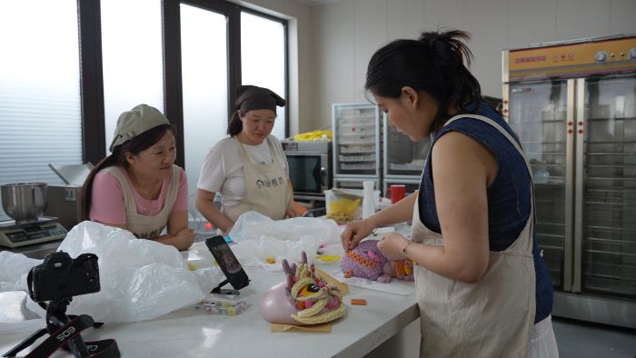 起初,高斯雅的花饃制作并不順利。既沒有現成的教程,也沒有經驗豐富的師傅指導,她只能依靠反復試錯,摸索著前進。蒸出來的饅頭不是爆開就是塌陷,有時一天報廢十幾批,讓她倍感挫敗。但她并沒有放棄,而是像解謎題一樣,逐個排查問題,從水粉配比、醒發時間到色素用量、蒸制火候,一點點摸索,終于掌握了面團的“脾氣”。