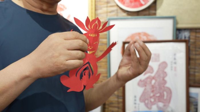 韓學敏認為,傳承非遺的關鍵在于“守根與創新”。他強調,剪紙技藝的傳承不僅僅是技巧的傳授,更重要的是對文化內涵的理解和傳承。他與地方教育局合作,為學校的老師進行培訓,讓他們將剪紙藝術帶入課堂,讓更多的孩子了解和喜愛這門藝術。同時,韓學敏也積極探索剪紙藝術的創新之路。他將傳統的剪紙圖案與現代元素相結合,創作出許多新的作品,例如哪吒鬧海、京劇臉譜等,深受年輕人的喜愛。他還將剪紙與服裝、包包等相結合,讓這門古老的技藝煥發出新的活力。