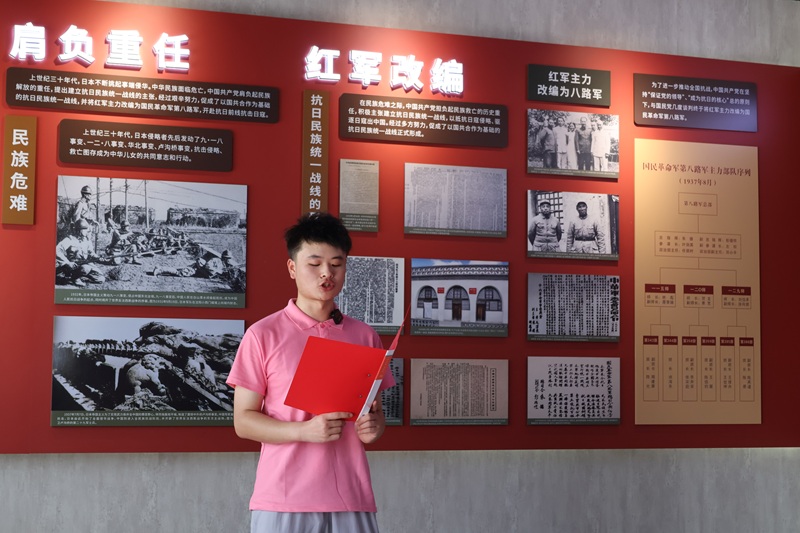 1937年8月25日,中國工農紅軍在涇陽云陽完成改編,正式肩負起八路軍的抗日使命。朱德總指揮在此宣告《三大紀律八項注意》,隨后率部東進。實踐團隊肅立于紅軍改編紀念碑前,入黨誓詞與80多年前的出征誓言在廣場上交匯激蕩。“那一刻,展柜中銹跡斑斑的步槍和手榴彈雖沉默不語,卻似有震耳欲聾的力量!”成員王藝巖凝視展品時眼眶濕潤,“先輩用簡陋武器對抗鋼鐵洪流,靠的正是血肉之軀鑄就的紀律長城。”