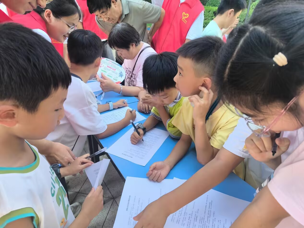 問卷調(diào)研摸實(shí)情,安全需求精準(zhǔn)答 為了進(jìn)一步了解居民對(duì)消防安全知識(shí)的掌握程度,志愿者在各社區(qū)開展了問卷調(diào)查活動(dòng)。精心設(shè)計(jì)的問卷涵蓋了居民日常生活中的各類消防安全要點(diǎn),包括家庭用電安全規(guī)范、滅火器使用技巧、火災(zāi)逃生路線規(guī)劃等實(shí)用內(nèi)容。“做飯時(shí)油鍋起火該如何處理”“火災(zāi)逃生時(shí)需要注意哪些事項(xiàng)”等貼近生活的問題引發(fā)了參與者的熱烈討論。小朋友們表現(xiàn)出了極大的學(xué)習(xí)熱情,他們認(rèn)真思考每一個(gè)問題,遇到不懂的地方主動(dòng)向志愿者請(qǐng)教。志愿者們則耐心細(xì)致地解答每一個(gè)疑問,及時(shí)糾正錯(cuò)誤認(rèn)知,通過“一問一答”的互動(dòng)方式,幫助孩子們建立起正確的消防安全觀念。一位參與活動(dòng)的家長表示:“這種形式特別好,孩子們?cè)谔顚憜柧淼倪^程中就把安全知識(shí)牢牢記住了。”