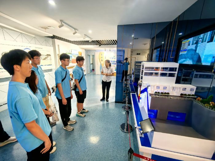 當日下午,實踐團來到江蘇省設計院。在工作人員引導下,成員們了解了設計院的基本結構與職能,參觀了陳列館,通過展品感受水利事業發展。設計院的專家們還通過短片為實踐團介紹了江蘇省在水利規劃、設計方面的工作成果,以及在國家水網建設中的實踐經驗。實踐團成員們積極提問,與專家們就水利工程建設中的實際問題進行了深入交流。