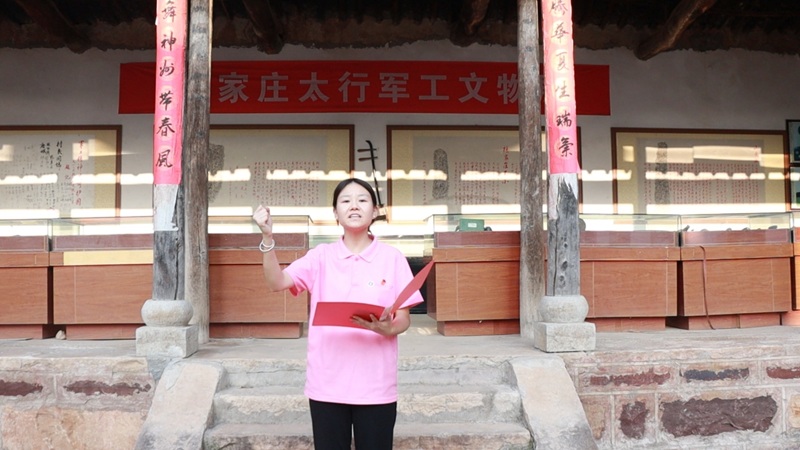 “當?shù)谝豢|陽光照進窯洞車間,錘頭與鋼砧的交響便喚醒了沉睡的山谷。”實踐團成員趙怡軒的深情朗誦,如一把鑰匙,輕輕打開了楊家莊那段塵封的軍工往事,為這段紅色歷史注入了鮮活溫度。她用飽含激情的語言,將團隊成員帶回那個靠信仰照亮黑夜的年代:軍工戰(zhàn)士們在油燈下繪制圖紙,在寒風中鍛造零件,用汗水與智慧凝結(jié)成保家衛(wèi)國的利器。這場沉浸式朗誦讓紅色記憶愈發(fā)具象,更在在場每個人心中播下了傳承的種子。