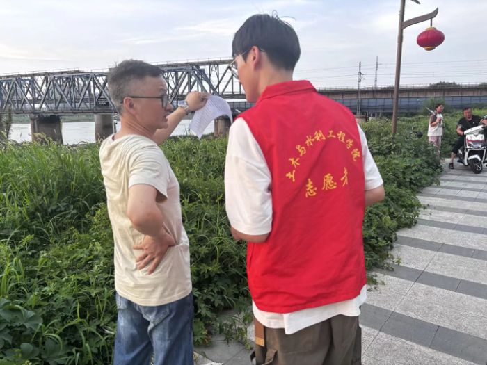 圖為團隊成員在淮河沿岸做問卷調查 王曦攝