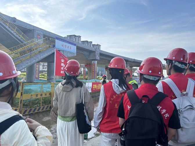 蚌埠實踐:工業記憶與現代工程的生態交響深入延安路淮河大橋建設現場,師生們通過專題座談會,詳細了解了項目貫穿始終的生態優先理念。技術負責人重點介紹了保護淮河水質與生態的關鍵措施,包括精細化的施工廢水處理、嚴格的揚塵與噪音管控,以及橋梁設計與周邊環境的協調融合。項目方“將綠色基因植入工程全生命周期”的決心,生動詮釋了現代工程守護綠水青山的擔當。