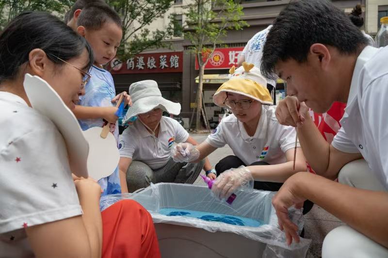 為提升互動體驗,義賣攤位還設有簡易非遺手工體驗角。實踐團成員邀請居民動手體驗漆扇和漆包的繪制與花紋設計,在指導過程中同步講解非遺知識,讓更多人了解這場公益活動背后的文化價值與溫暖初心。