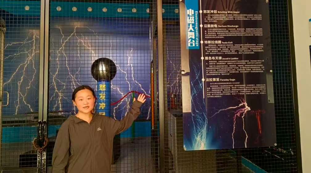 圖為志愿者講解電磁大舞臺