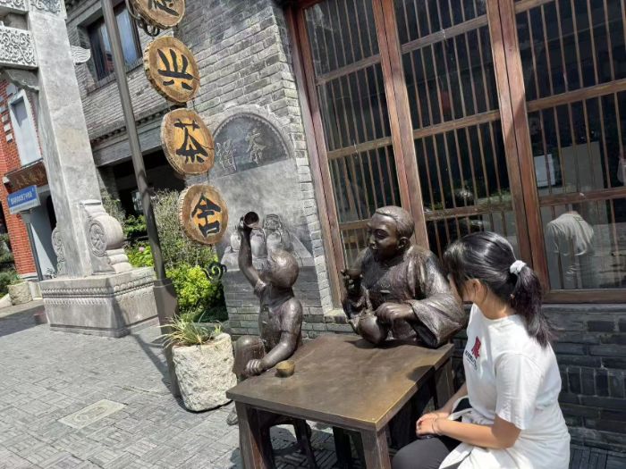 圖為栟茶古鎮茶館外銅像 季佳雨 供圖
