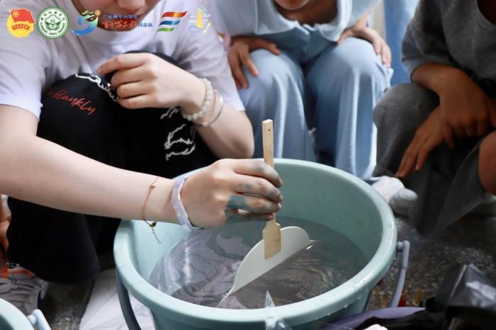 實(shí)踐隊隊員表示,漆扇制作中 “一半人為,一半天成” 的特點(diǎn),既能讓孩子們在動手過程中培養(yǎng)專注力與創(chuàng)造力,又能讓他們體會到傳統(tǒng)工藝中人與自然和諧共生的智慧。