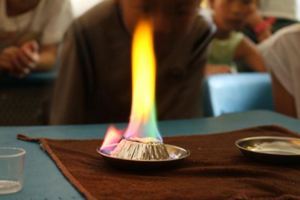 隨后的6天里,實踐團開展了一系列特色化學實驗課程:從“大象牙膏”觀察泡泡變化,到“彩虹雨”探究密度與擴散原理;從“火焰掌”演示燃燒特性,到焰色反應中見證金屬化合物燃燒的絢麗色彩;從模擬“火山噴發”了解地質知識,到手工造紙體驗傳統工藝與環保理念。實踐團成員通過原理講解、指導操作和現象觀察,激發孩子們的科學興趣,培養觀察、動手與思考能力,讓科學的種子在趣味體驗中生根發芽。