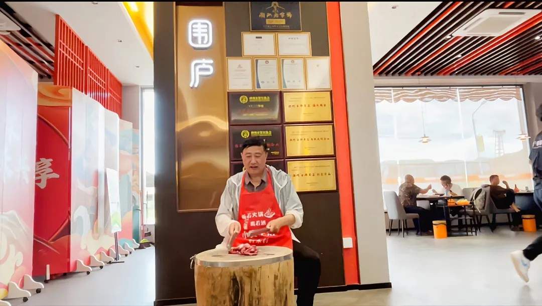 圍廬火鍋店里,潮州文化的魅力撲面而來(lái):特色壁畫(huà)裝點(diǎn)著英歌舞主題廳,仿佛“嘭嘭”的鼓點(diǎn)聲此起彼伏;游客們手捶牛肉丸,體驗(yàn)?zāi)鹃撤w、肉糜四濺,勁道彈牙之感油生;廚師們制作紅桃粿,巧手翻飛、粿印輕叩,軟糯咸香仿佛在口中漫溢。