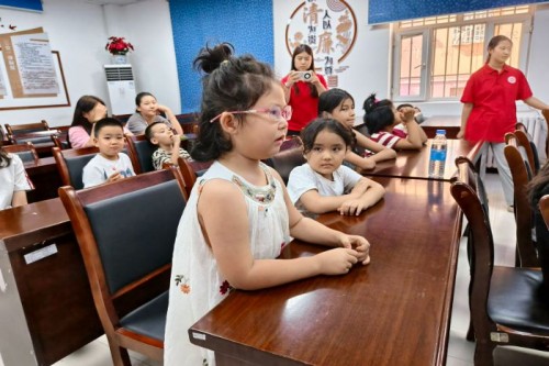 (圖為實踐團成員烏力凡向小朋友們介紹湖湘文化)