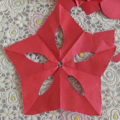 經過學習,董法以五角星為創作主題,獨立完成“五角映輝”作品,通過鏤空層次展現五角星的立體光影,邊緣輔以傳統“回紋”裝飾,既保留剪紙的對稱美感,又融入現代設計語言。