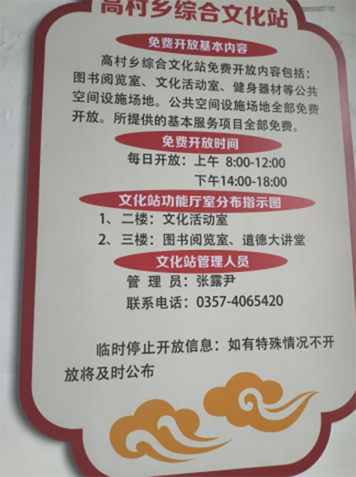 高村鄉(xiāng)積極融入新思想,努力開創(chuàng)工作新氣象、新局面。為滿足人民群眾日益增長的精神文化需求,政府免費為群眾提供了學(xué)習(xí)與健身的場所,豐富了群眾的業(yè)余生活,提升了群眾的身體素質(zhì)和文化素養(yǎng)。在高村鄉(xiāng),特色圖標(biāo)隨處可見,彰顯著政府工作的作為和高效性。例如,三樓一處以小篆寫成的文字,既展現(xiàn)了傳統(tǒng)文化的魅力,又體現(xiàn)了高村鄉(xiāng)獨特的創(chuàng)新思維。此外,青年志愿承諾墻展示了新時代青年積極投身家鄉(xiāng)建設(shè)、為國家發(fā)展貢獻力量的決心和擔(dān)當(dāng)。在農(nóng)業(yè)生產(chǎn)和旅游業(yè)宣傳方面,高村鄉(xiāng)緊跟時代潮流,積極運用無人機技術(shù),提高了生產(chǎn)效率,擴大了旅游知名度。高村鄉(xiāng)正以積極向上的姿態(tài)穩(wěn)步向前邁進,不斷探索發(fā)展新路徑,為實現(xiàn)鄉(xiāng)村振興注入新動力。