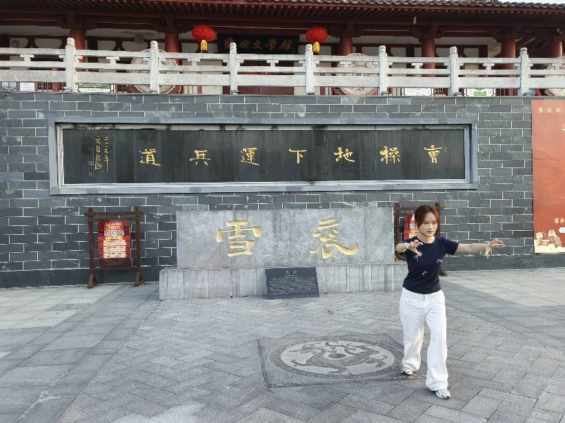 實踐團隊創新采用"學習-實踐-傳播"三位一體模式,在曹操運兵道這一三國文化遺址中開展非遺展示。地下迷宮般的運兵道前,豐颯爽通過模擬仙鶴展翅的舒展姿態,讓參與者在歷史場景中感受傳統養生功法的獨特魅力,千年非遺與現代生活在此刻產生奇妙共鳴。