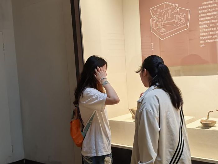 意外的收獲來自一位“小小講解員”。這個系著綬帶的孩子,指著一件漢代俑衣說:“這上面的花紋,當時的姑娘們也會繡在自己衣服上。”隊員們順著她的指引細看,布料殘留的紋理間,仿佛能看見漢代女子飛針走線的身影,文物瞬間有了煙火氣。